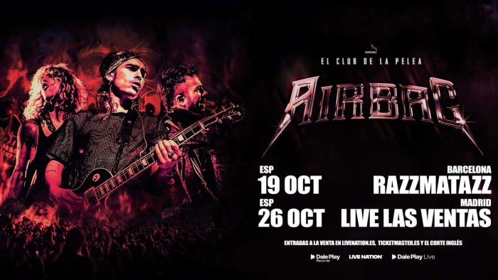 Airbag, la banda más grande del rock argentino contemporáneo, vuelve a nuestro país el próximo octubre con su gira internacional El Club de La Pelea, que no para de crecer. La banda ofrecerá dos únicos conciertos el 19 de octubre en la sala Razzmatazz de Barcelona y el 26 de octubre en la sala Live Las Ventas de Madrid.
